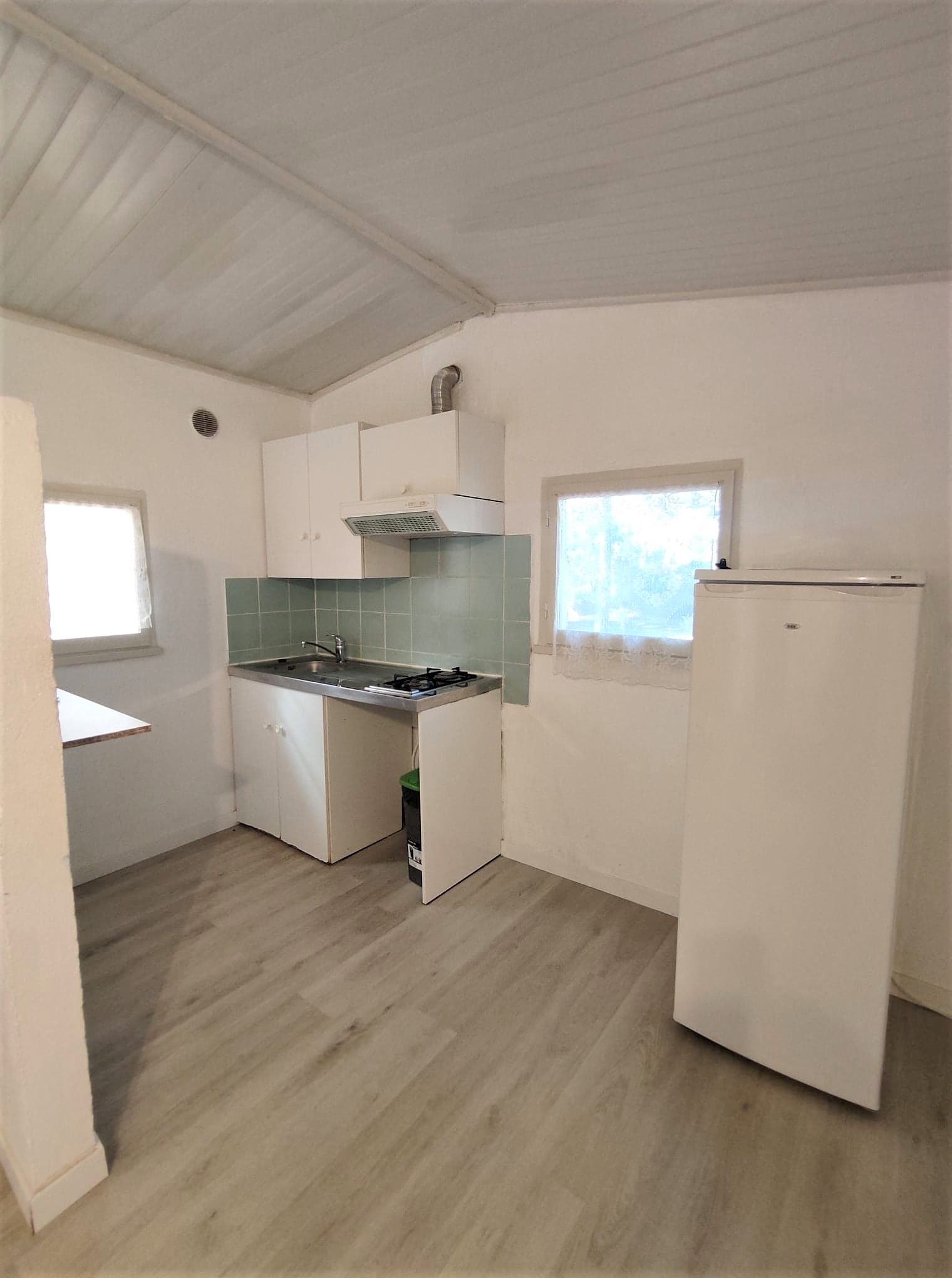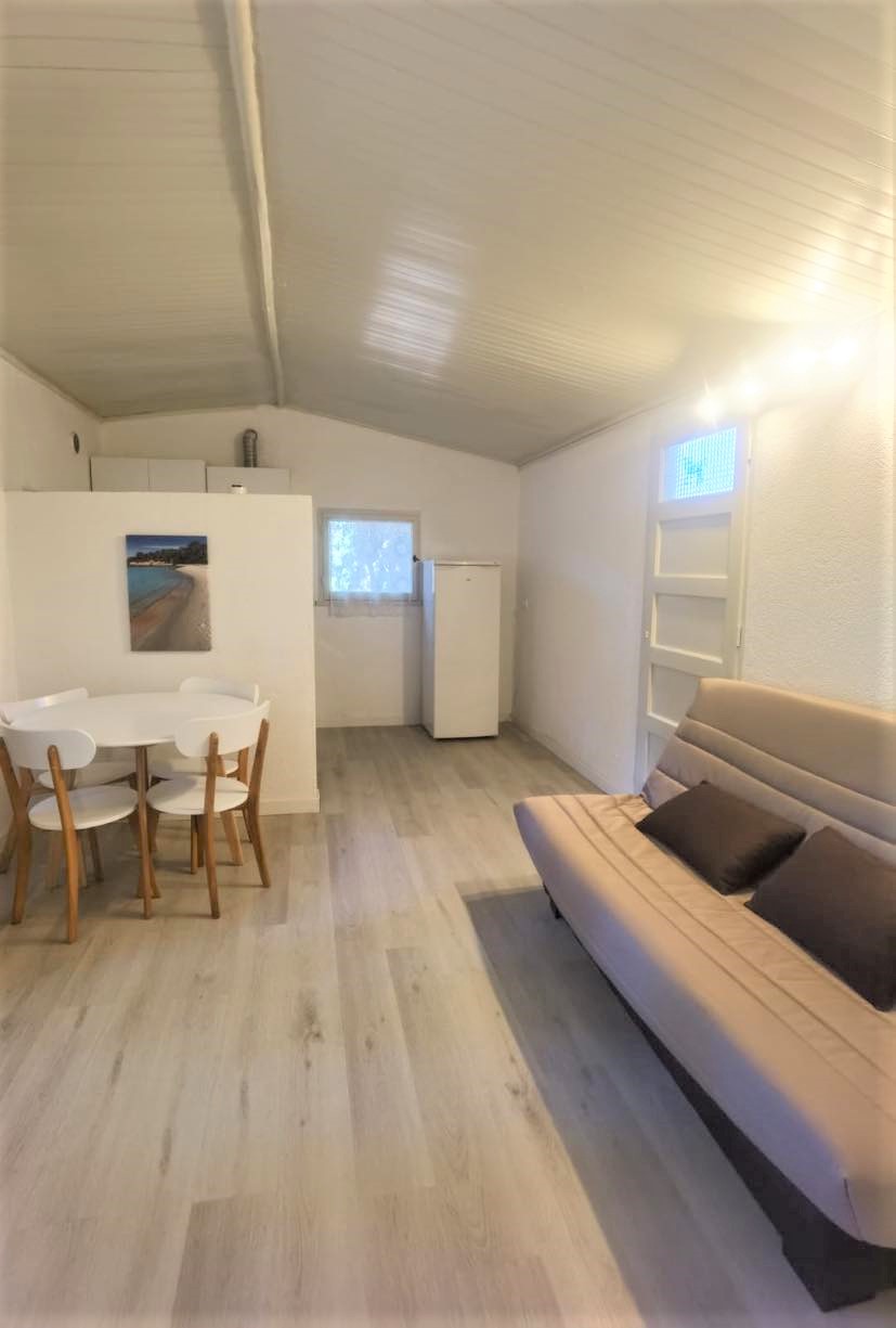 | CARACTERISTIQUES Max: 4 personnes Surface: 35 m² environ 1 cuisine équipée 1 mini séjour intérieur avec canapé convertible 1 chambre 1 lit double (140) 1 salle d’eau avec WC Terrasse extérieure en bois | EQUIPEMENTS INVENTAIRE : Cliquez ici pour consulter l’inventaire. LOCALISATION : Zones D et E, dans la pinède, entre 6 et 8 minutes à pied de la plage Location de linge sur demande. |